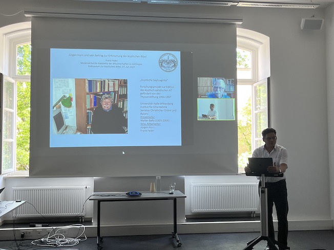 July 7th, 2023 allowed for the celebration of the life and work of Dr. Jürgen Horn.  As a newcomer to the Academy and the city of Göttingen, I was pleased to become acquainted with some of the individuals in attendance.  The presentations vividly reminded those in attendance of Jürgen Horn’s widespread scholarly interests, the numerous contributions he made to academia as well as the good friend he was to those he worked with. After a welcoming address by Heike Behlmer introducing Jürgen Horn as teacher, colleague, and friend, some special aspects of Horn’s research were highlighted. Frank Feder recalled their common work during the former Halle University project “Koptische Septuaginta” (1994-1999) and the important contribution which Jürgen Horn made to the reconstruction and edition of the Coptic Old Testament.