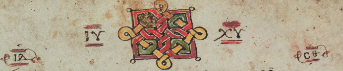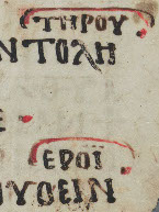 ⲇⲓⲁⲯⲁⲗⲙⲁ regelmäßig in Rot geschrieben. Auch die ersten Verse jedes Psalmenkapitels, die als Titel zu den Kapiteln dienen, sind rot. - Gelegentlich steht ein doppelter schwarz-roter Supralinearstrich sowohl über nomina sacra als auch über Wörtern ohne sakrale Bedeutung.[2] M.E. gehört dieser schwarz-rote Supralinearstrich zur Dekoration, zumal er nicht nur bei nomina sacra sondern auch bei solchen Wörtern wie