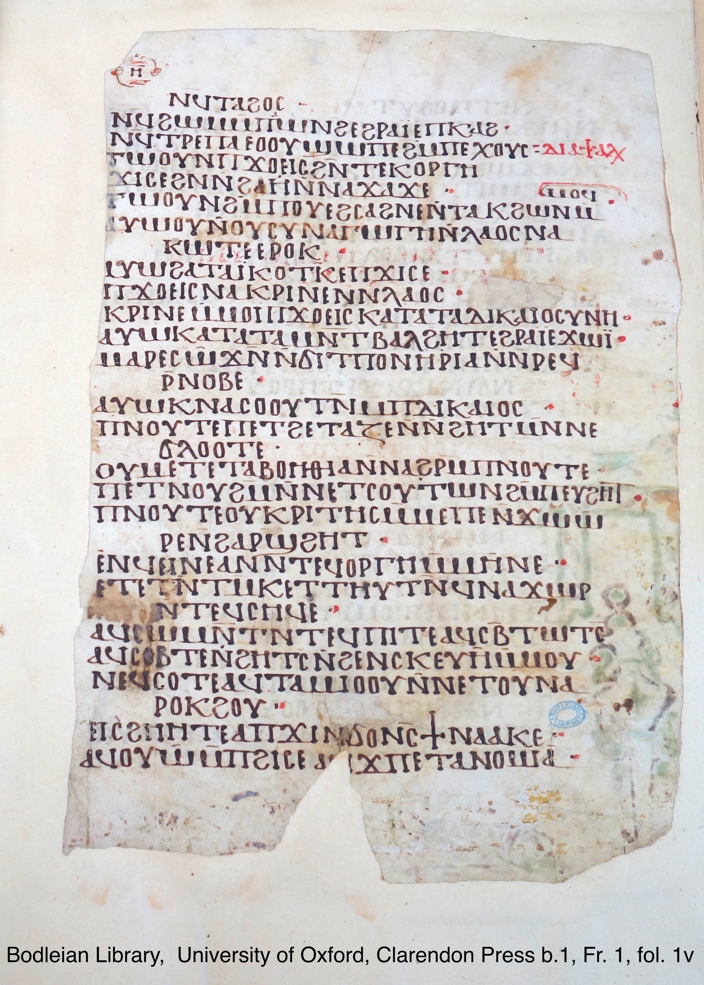 - Oxford, BL, Ms. Copt. d. 265 (P), frg. 1–2 (olim Copt. g. 3)