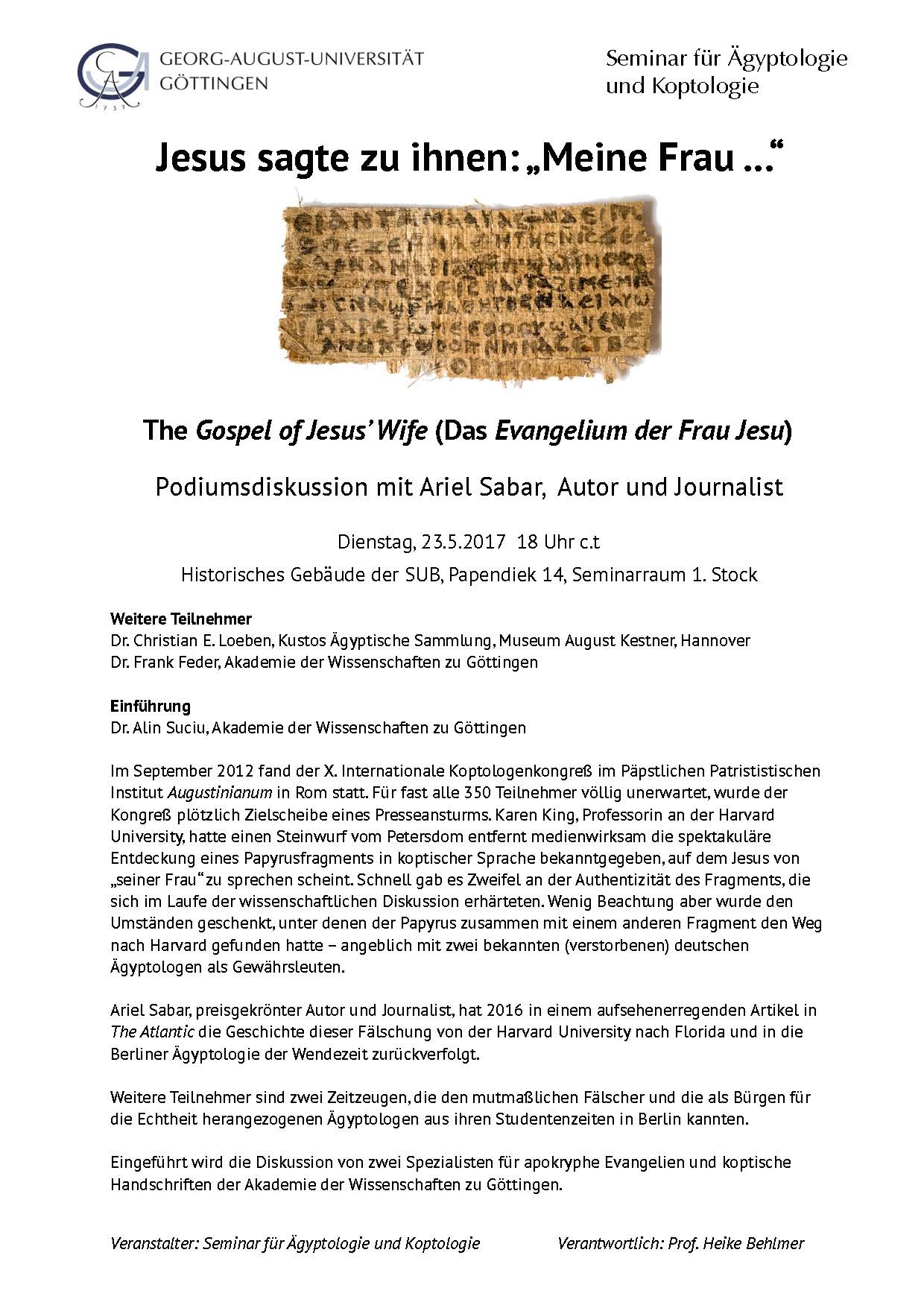 On May 23, we will host a discussion with Ariel Sabar, the author of a splendid article which unveiled the forger of the Gospel of Jesus' Wife papyrus. Here is the official announcement:
